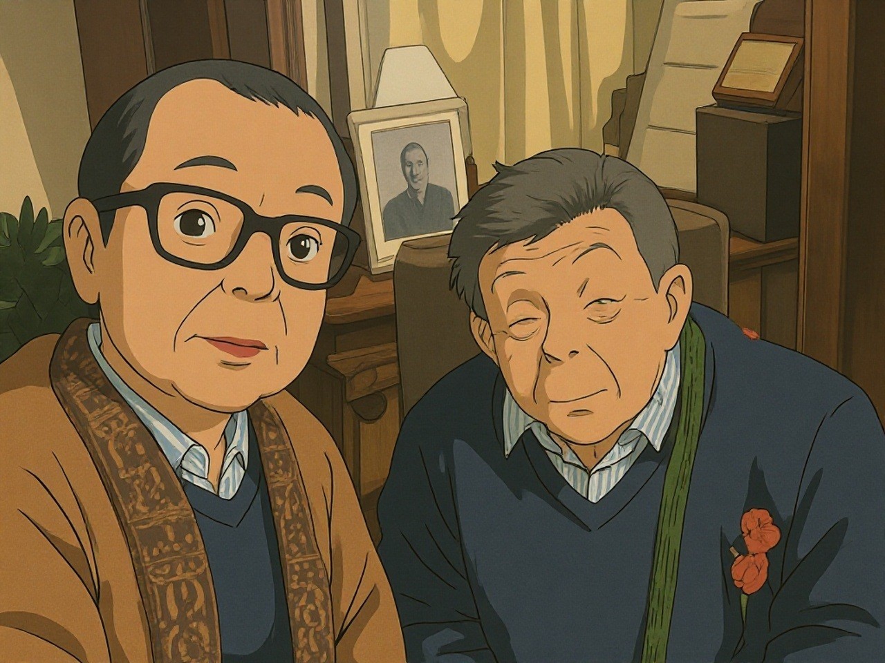 午睡から目覚めたら、AIイラストメーカーなるものを使って、年末に実家へ行き、おふくろと撮った写真をイラストにしてみた